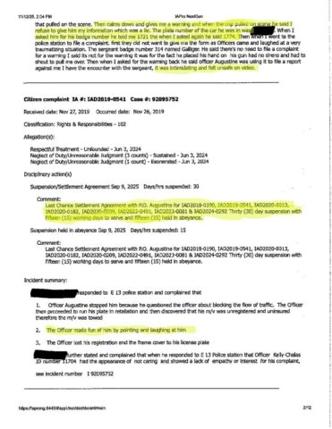 First, the lawsuit. Then, the “officer resume” (the complaints against him that were investigated by Internal Affairs) & finally, his punishment, such as it is.