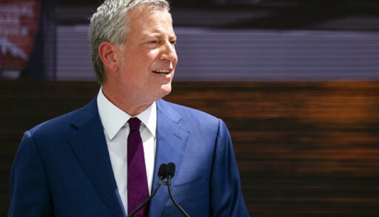 Democratic presidential candidate New York Mayor Bill de Blasio speaks during the official dedication ceremony of the Statue of Liberty Museum on Liberty Island Thursday, May 16, 2019, in New York. (AP Photo/Craig Ruttle)
