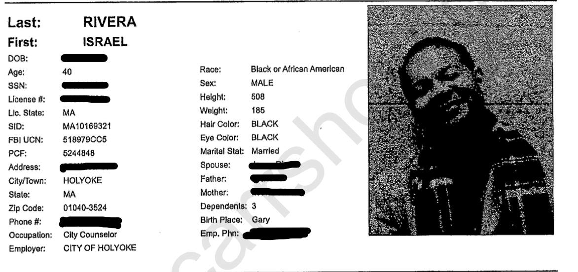 Here’s the Mass State Police report on the Dec. 20 drunk-driving arrest of Democrat Holyoke city councilor at large Israel Rivera.