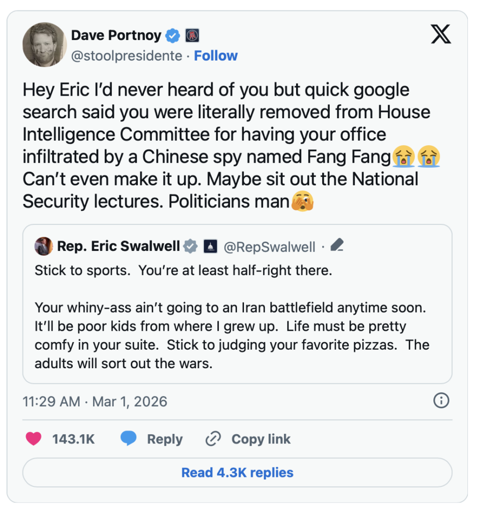 OUCH: Portnoy Slams Swalwell in Brutal X Post – 3.2.26