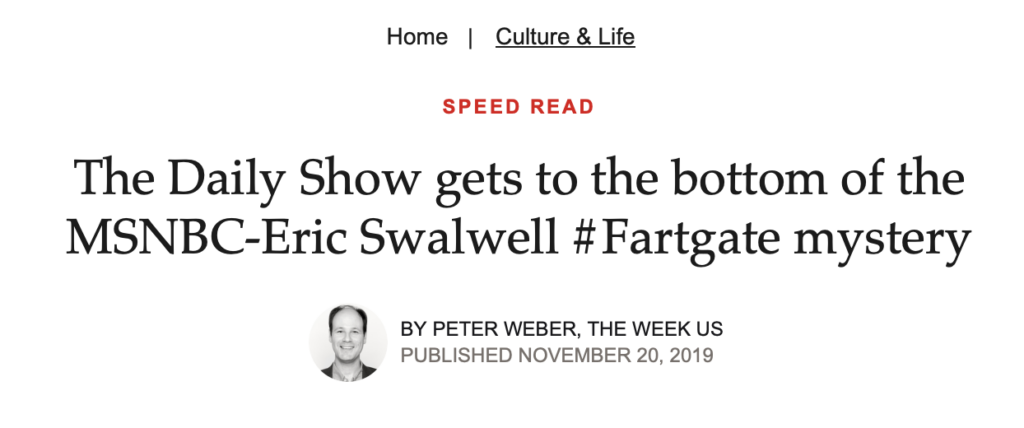 Besides his infamous Fang Fang scandal, the only other Swalwell moment that moved the needle was #Fartgate.