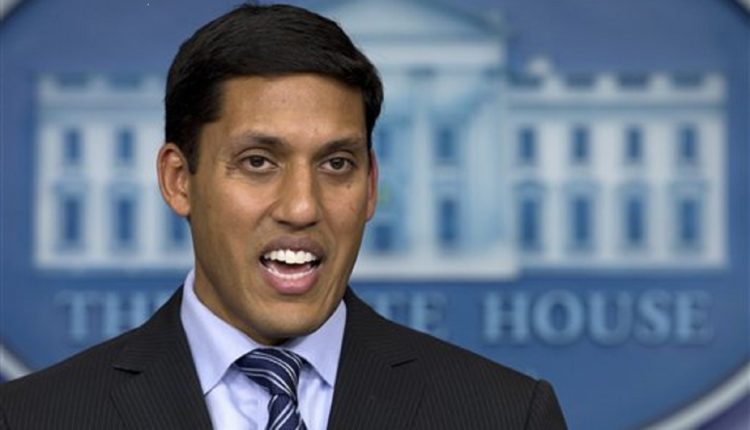 FILE - In this Oct. 3, 2014 file photo, Administrator for the U.S. Agency for International Development (USAID) Raj Shah speaks in the James S. Brady Press Briefing Room in White House in Washington. The head of the U.S. Agency for International Development says he will step down from the post in February. Shah has led the agency since 2010. In a statement released Wednesday morning, he said he had "mixed emotions" but gave no reason for his resignation. (AP Photo/Carolyn Kaster, File)