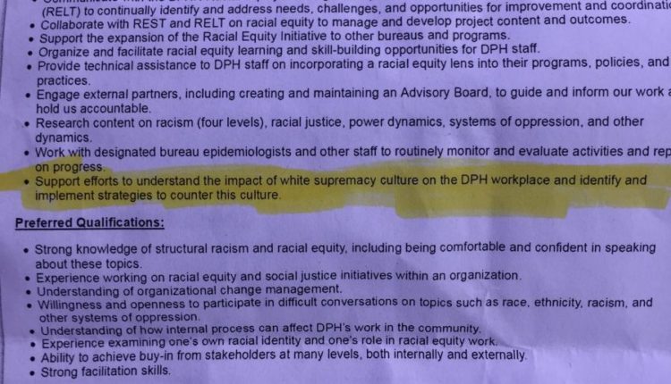 Anyway, the DPH just listed an opening for a newly created position – “racial equity coordinator.”